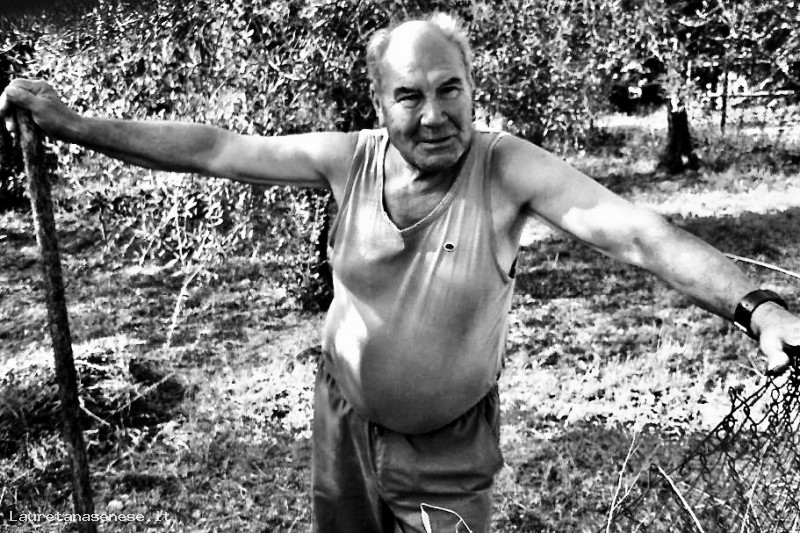 GIORGIO MALFETTI di 76 anni, dopo una vita passata a fare lo scalpellino, passa tutto il suo tempo libero da pensionato a curare un piccolo oliveto che tiene meglio di un giardino di casa.