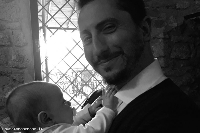 Bella immagine di Luca Valori con in braccio Marco, il figlioletto di Giulio Rosini.