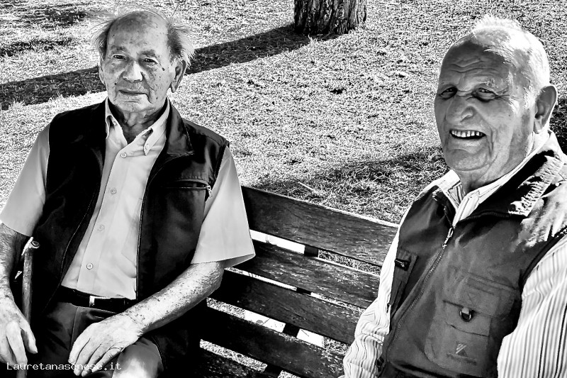 Due vecchi amici ultra novantenni, si incontrano spesso  sotto i pini del parco di Asciano Scalo.