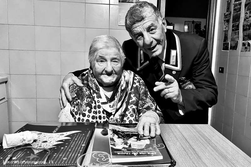 La signora Bazzanella è nata a Predazzo il 17 settembre 1919, alla veneranda età di 103 anni compiuti, ha mostrato di apprezzare tantissimo la visita inaspettata.