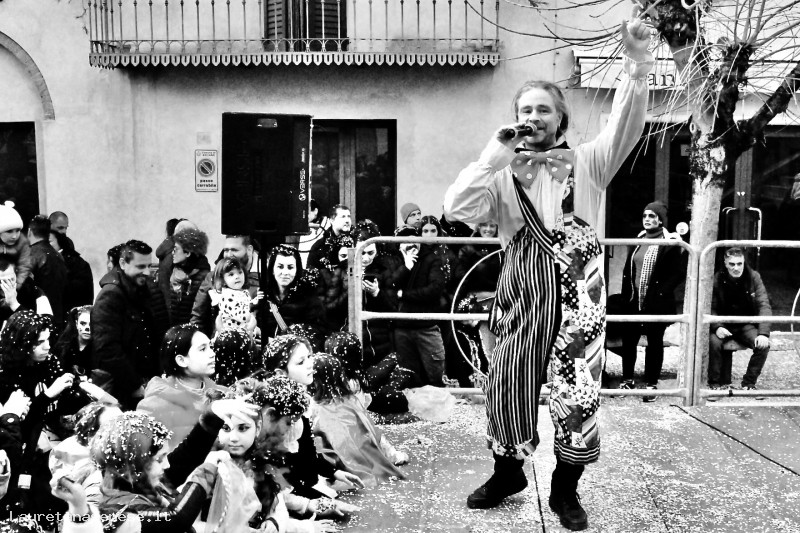 Giacomo Equatori, intrattiene la piazza nella prima domenica del Carnevale di Meio.