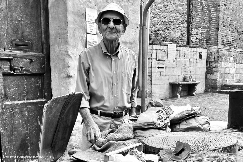 Per la Festa Contadina, gli è stato chiesto di reinterpretare il mestiere di mugnaio, dando spiegazioni ai visitatori su questa importante e vitale attività, in passato, per la comunità di Asciano.