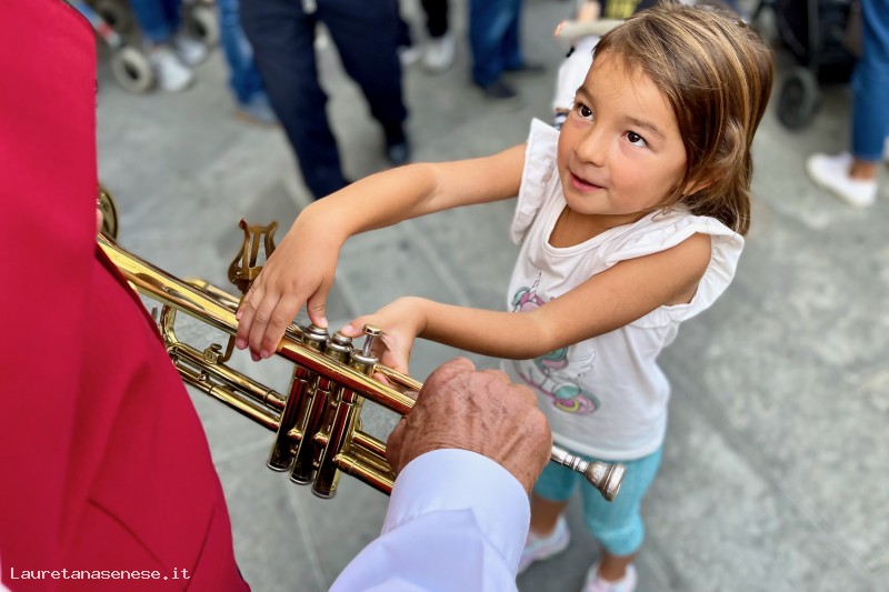 Margherita, la figlia più piccola di Marcella Laschi, al temine del concerto delle Bande sulla scalinata della Basilica di Sant'Agata, corre da nonno Marcello per chiedergli di suonare la tromba.
