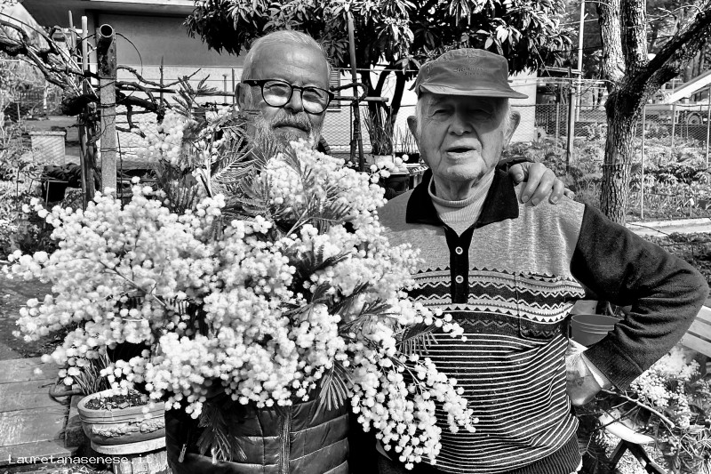 Nella foto, a destra: Marcello Palazzi, il caro amico che mi ha gentilmente donato il fascio di Mimosa.