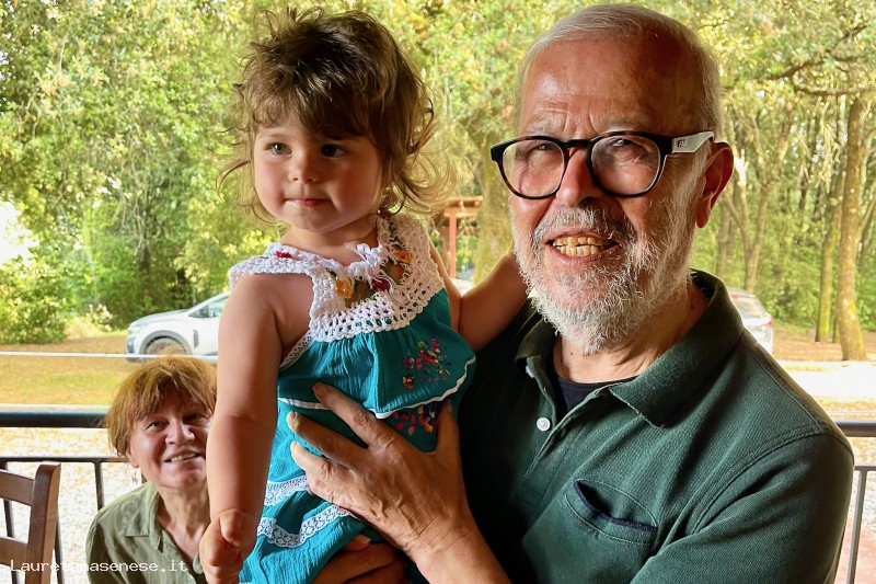Giorgio Romi di 80 anni (vecchia generazione), ha avuto l'opportunità di coccolarsi la piccola Guia di poco più di 1 anno (nuovissima generazione), figlia della nipote Alice Ciappi.