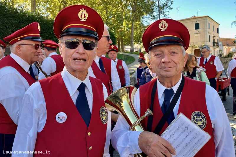 Elido Cassioli e Novilio Parrini, sono fra i componenti più anziano del gruppo bandistico, ma il loro entusiasmo e brillantezza non li fa sfigurare fra i più giovani, anche in fatto di fiato.