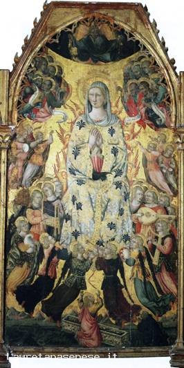 Both the London Assumption of Matteo di Giovanni and that of Giovanni di Paolo, are inspired by the Virgin of the Antiporto of Camollia, a lost fresco that stood out on the main northern entrance of Siena and that was realized, around 1330, by Simone Martini.