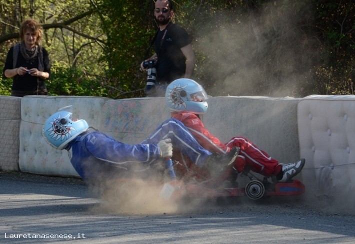 Negli anni '50 era uso dei ragazzi del paese, le discese ripide e la poca motorizzazione lo consentivano, divertirsi con "carretti" costruiti con assi di legno e cuscinetti fuori uso. Ben presto iniziò una rivalità tra i rioni del centro storico, che sfociò in una gara corsa in occasione della festa del Patrono, San Martino. La tradizione si interruppe per qualche anno per riprendere a metà degli anni '60 con carretti più evoluti: ruote di notevole diametro con cuscinetti incorporati, lo sterzo tipo automobile, freni a pedale, sul tradizionale percorso di Via San Martino, Via Ciro Pinsuti. I mezzi che correvano ed il percorso, in selciato di pietra, non erano, però, più idonei per rispettare la sicurezza degli spettatori. Nel 1982 con la rinascita dell'attività della Pro-Loco la formula fu cambiata con un ritorno all'antico; carretti tradizionali con cuscinetti a sfere e struttura in legno, il percorso nella sede stradale in asfalto con partenza da Piazza Garibaldi sino all'Osteria delle Grotte. Dal 1997 la Carriera di San Martino si svolge con i rioni.Ogni rione ha a disposizione 4 carretti più uno di riserva. Il sabato mattino precedente la Carriera è dedicato al montaggio dei box mentre nel pomeriggio si effettuano le prove generali. La domenica mattina verifica delle caratteristiche dei carretti, benedizione degli equipaggi e prime 12 discese. La domenica pomeriggio seconde 12 discese e finali. Il rione vincitore viene premiato con coppe e stendardo dipinto da un pittore del luogo.