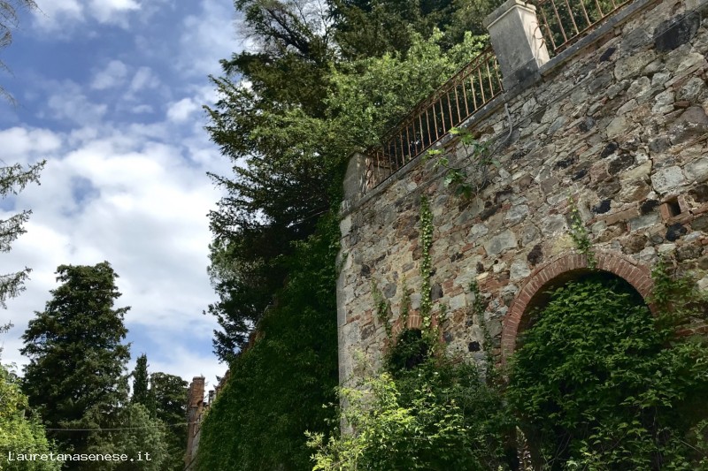 L’impianto del giardino è quello tipico all’italiana, realizzato a cavallo tra l’ottocento e il novecento, con pozzo in pietra che fa da perno alla composizione del giardino stesso. Sono presenti aiuole delimitate da pietre, siepi di bosso, conifere secolari tra cui Cedro del Libano e Cedro Deodara, sono inoltre presenti altre essenze dell’impianto originario tra cui piante di alloro e di tasso. tanto che, arrivandoci, si rimane incantati dall'aspetto fiabesco del castello.