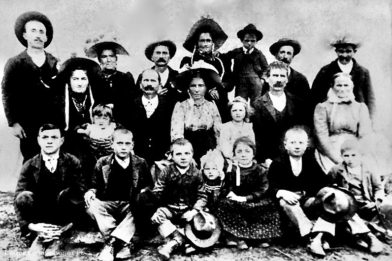 La foto è stata recuperata dagli eredi della bambina che si trova al centro con la cuffia e che è diventata successivamente componente della famiglia Granai.