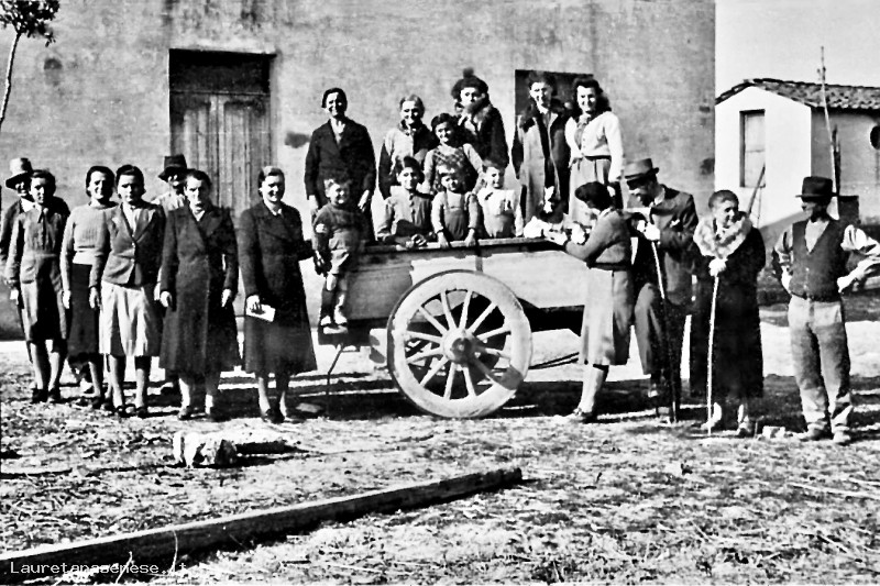Accanto a lei, ultimo a destra, ci sembra di riconoscere la fisionomia di Mariano Polloni, capoccio della famiglia che coltivava il podere.