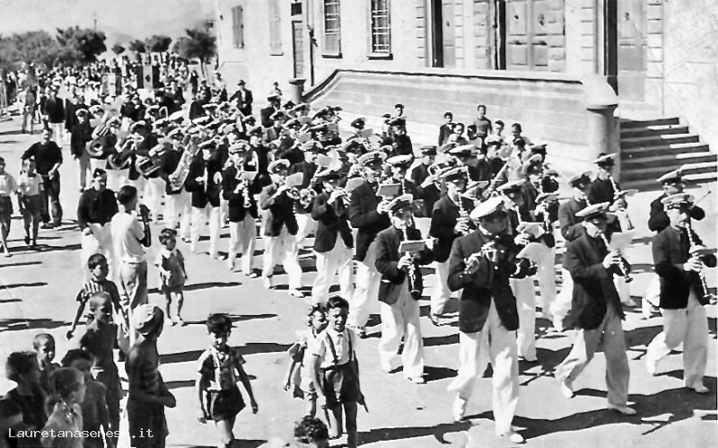 Sembra che la filarmonica fosse al seguito di una gita alla località marina, organizzata dal Dopolavoro Comunale di allora.