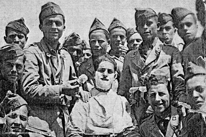 Particolare foto di tanti anni fa, quando il nostro concittadino Angiolo Equatori, trovandosi sotto le armi, ha trovato il modo di esercitare anche li la sua professinalità di barbiere.