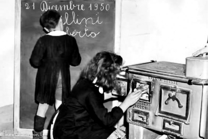 1950, Giovedi 21 Dicembre - Il riscaldamento di una Scuola Rurale Asciano