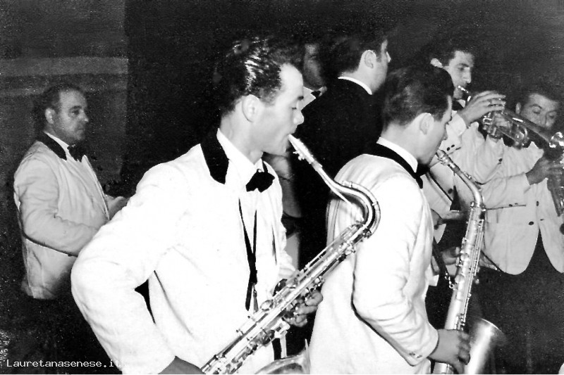 Tutti e 5 i protagonisti dell'animazione musicale degli anni '50, insieme sul palco del Teatro Ravvivati. Questi personaggi, oltre a far parte della Filarmonica Giuseppe Verdi, erano sempre pronti a suonare ad ogni occasione che gli si presentasse.