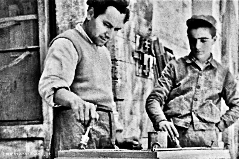Nella foto si riconoscono Enzo Cantelli, a quel tempo falegname e Novilio Parrini, come ragazzo di bottega.