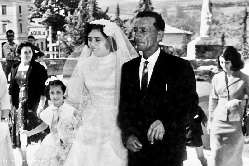 Gli sposi entrano in Collegiata, accompagnati dai rispettivi genitori: