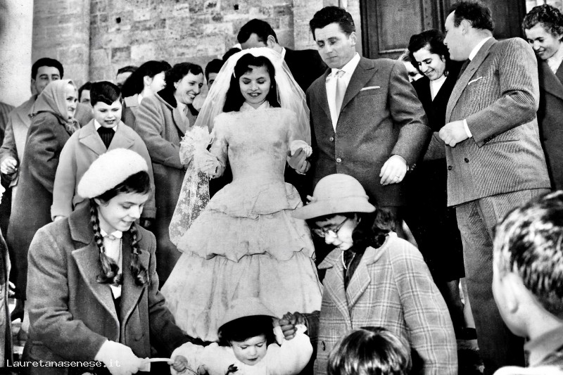 Lo sguardo di Luciano Duchini, di circa 10 anni, fisso sulla piccola damigella di circa 3 anni che porta il cesto dei fiori. Niente di particolare se quest'ultima non fosse Marilena Marcocci, divenuta in seguito la moglie amatissima di Luciano.