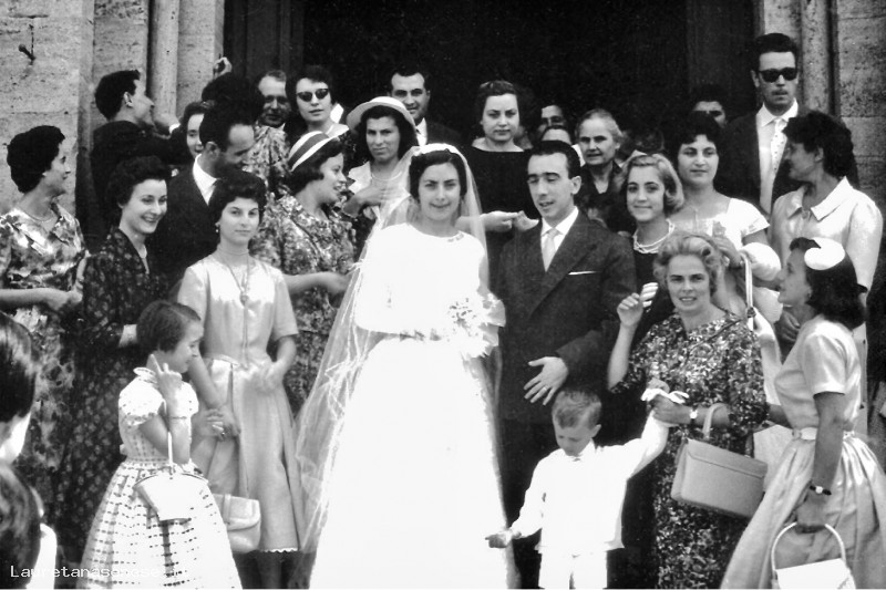 Gli sposi contornati da amici e parenti fra i quali si riconoscono: