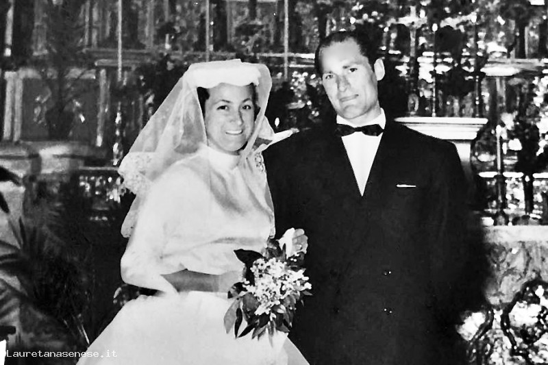 La foto li ritrae accanto all'altare, subito dopo il matrimonio religioso svoltosi in Sicilia.