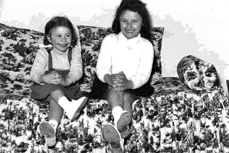 Le due bambine sedute sul divano a guardare la televisione di casa Sabatini: