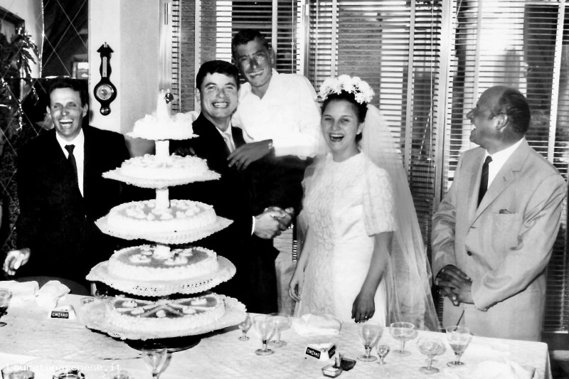 1966, Domenica 28 Agosto – Luciano e Rosanna Biancucci, sposi al pranzo con testimoni e amici