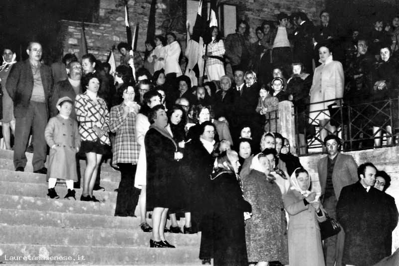 1967? - Il coro della Parrocchia sulle scale il Venerdì Santo Asciano
