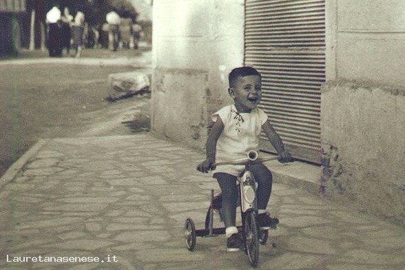 Non ne siamo certi, ma il bambino che corre felice sul triciclo, riteniamo sia Marco Petrioli.