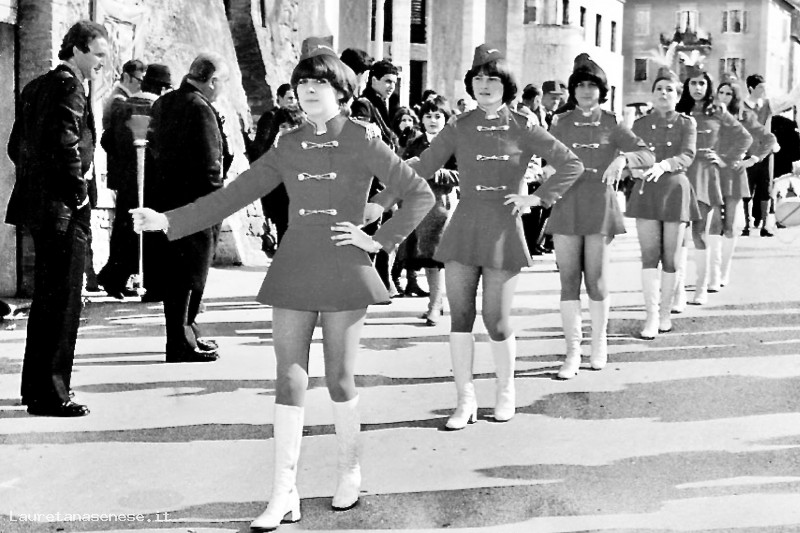 Le Majorette in formazione, entrano in paese alla testa della sfilata di Carnevale: