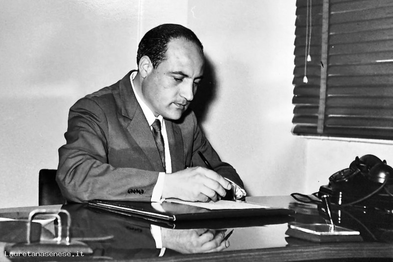 Il Professor Renato Lucatti, seduto alla scrivania appena preso servizio alla Scuola Elementare di Asciano, come Direttore del Plesso Scolastico.