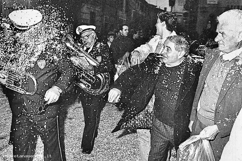1989, Febbraio - La Banda di Rapolano sotto un turbine di corandoli Asciano