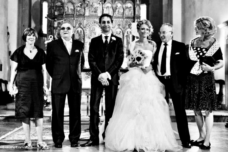 Mario Tozzi e la moglie Graziella partecipano, insieme ai consuoceri, alla cerimonia religiosa del matrimonio della bella figlia.