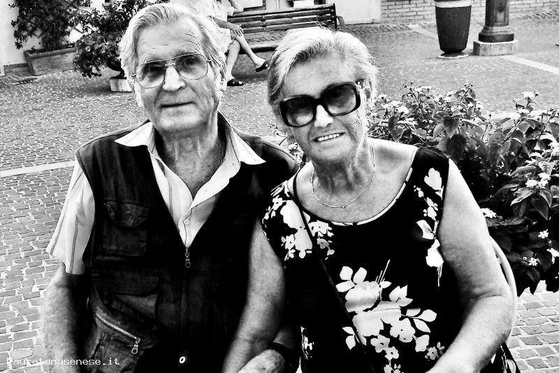 Bellissimo ritratto di Marcello Bazzotti, nato il 12 Aprile 1938 e la moglie Elena, seduti ad un Bar a Fano, nelle Marche.