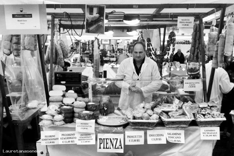 Rara foto dell'azienda Bindi impegnata a promuovere i propri prodotti presso cittadini e turisti senesi.