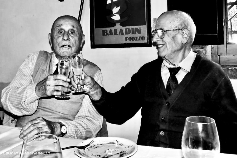 Due grandi amici che si ritrovano ogni anno ad Asciano per l'assemblea con pranzo sociale della COOP TRANQUILLA:
