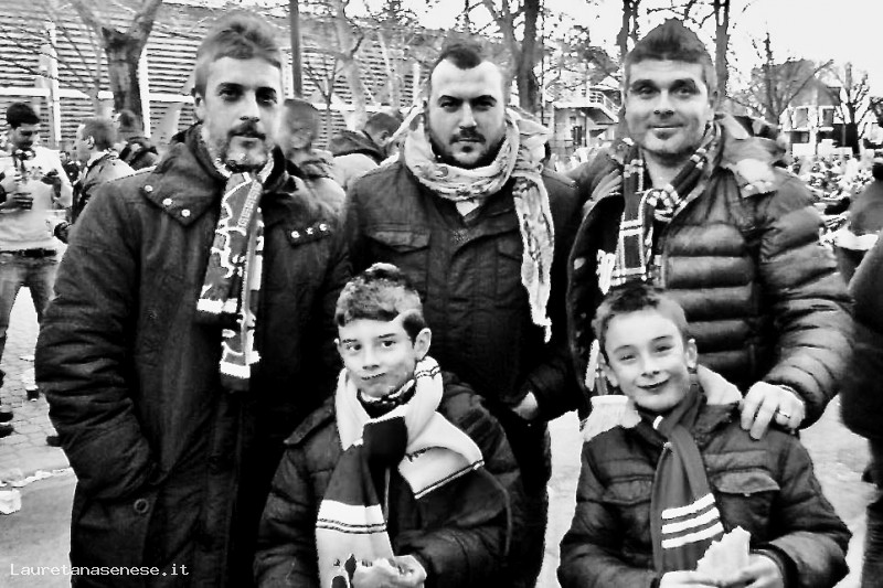 Foto ricordo, fuori dallo stadio Artemio Franchi di Firenze, dei gemelli Parri accompagnati dai rispettivi figli.