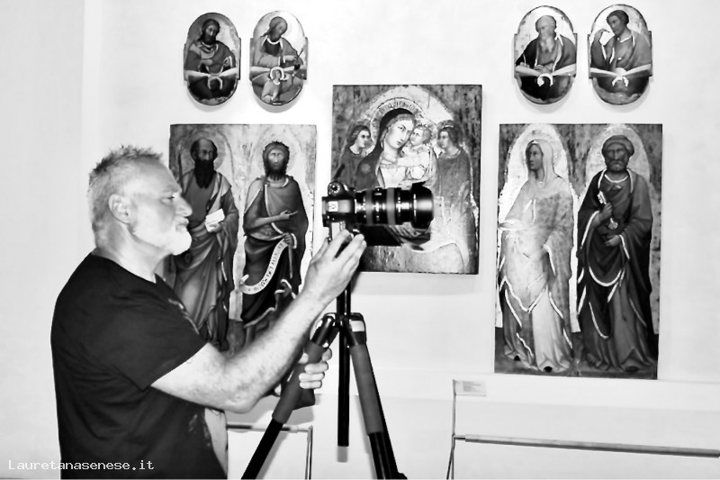Luciano Francini, bravo fotografo per passione, intento a fotografare alcune opre d'arte provenienti dalla Basilica di Sant'Agata.