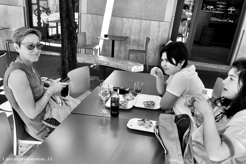 Ci ha perciò sorpreso piacevolmente trovarla a far colazione in Piazza Garibaldi, in compagnia della figlia nata ad Asciano e una sua amica.