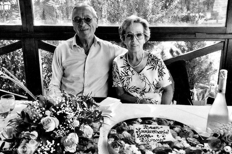 festeggiano i 50 anni di matrimonio al ristorante.