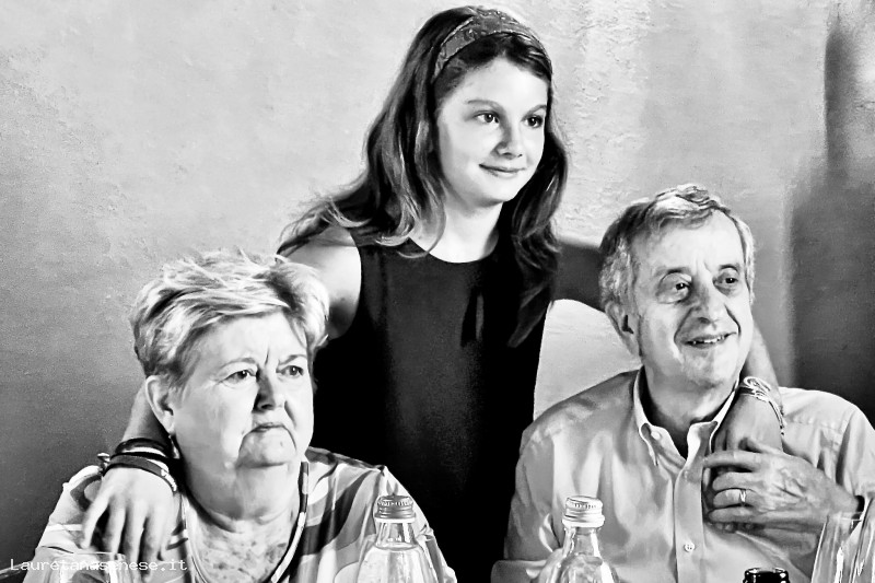 Nella foto scattata per il suo cinquantesimo anniversario di matrimonio, Mario è in compagnia della moglie Daniela Sestini e la bella nipotina Barbara Loretti, che vive a Milano.