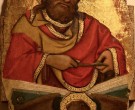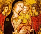 Tempra on table. each compartment 141x88 cm. Cusps 57x35 cm. A grandiose polyptych without a frame where there are various subjects of various authors: the Madonna in the center is attributed to by Taddeo di Bartolo, the four saints on the sides: S. Agata, S. Pietro, S. Paolo and S. Giovanni Battista are by Andrea di Bartolo and the four evangelists above are currently attributed to Paolo Fei or Taddeo di Bartolo.