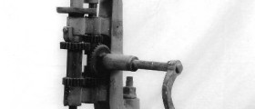 Un trapano di questo genere veniva piazzato normalmenrte su un banco che serviva come piano di appoggio per la foratura. Questo trapano, contrariamente a quelli alimentati a cinghia e, successivamente da un potore elettrico direttamente collegato, veniva azionato a mano tramite la rotazione della manovella presente sulla destra.