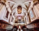 Finally, the two side walls of the Gothic hall are completely occupied by the inlaid wooden choir where, even today, the friars take their places during the daily religious services.