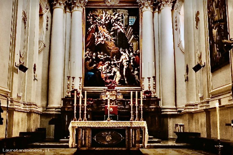 The high altar, located in the central apse of the church, is flanked by two minor altars inserted in two side niches.