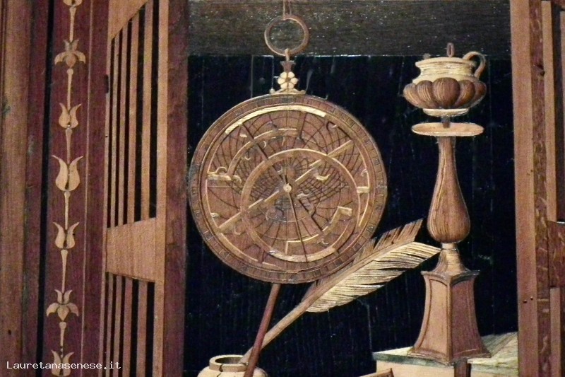 Finally, the two side walls of the Gothic hall are completely occupied by the inlaid wooden choir where, even today, the friars take their places during the daily religious services.