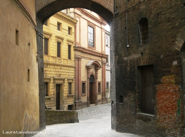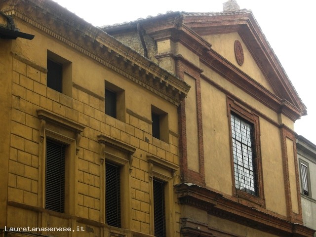 La chiesa dei Santi Niccolò e Lucia sede dell’omonima Compagnia laicale, che fu ricostruita sul finire del Cinquecento su un preesistente edificio medioevale dotato anche di un piccolo ospedale. La facciata è un tipico esempio di architettura senese tardo-rinascimentale, con il grande timpano su cui sono presenti superstiti tracce di un affresco di Ventura Salimbeni. L’interno, ristrutturato nel Seicento, accoglie una notevole quantità di opere pittoriche di artisti senesi, come gli affreschi di Sebastiano Folli sulla volta, tra i quali spicca al centro, il Trionfo di S. Lucia, ardita prospettiva mutuata dalla camera degli sposi del Mantegna a Mantova, la cui lezione, a distanza di un secolo e mezzo, non era stata evidentemente dimenticata. La grande tela centinata sull’altar maggiore con il martirio di S. Lucia è di Francesco Vanni e l’affresco nel catino absidale è di Ventura Salimbeni. Ai lati dello stesso altare sono presenti due notevoli statue in terracotta policroma del Quattrocento, raffiguranti S. Lucia e S. Nicola. La prima è attribuita a Giacomo Cozzarelli o Giovanni di Stefano che sarebbe anche l’autore della seconda che si caratterizza per il bellissimo volto. Sull’altare di sinistra vi è un olio su muro con la Crocifissione di Simondio Salimbeni, mentre il crocifisso è una scultura policroma più antica, completamente ridipinta. Nell’altare di destra, decorato da stucchi del Silini, si venera una piccola immagine con il volto della Madonna, che dicesi essere una copia dell’affresco di Simone Martini sull’antiporto di Camollia. Notevoli e rari i ricchi arredi in legno intagliato dei primi del Seicento di cui è ricca la chiesa. Nella contigua cappella della Compagnia anch’essa ornata da diverse pitture sempre di scuola senese per lo più del Seicento, si conservano alcuni pregevoli oggetti di culto, come uno stendardo con S. Nicola e S. Lucia degli inizi del ‘600, quattro testate di bara di Rutilio Manetti ed un reliquiario in argento con la reliquia di S. Lucia, opera del XVI secolo. Del tutto singolare e assai raro, è poi un ex voto del 1496, nel quale è raffigurato un certo Girolamo di Pietro Biringucci mentre viene sottoposto a tortura durante un interrogatorio dal quale uscirà del tutto scagionato dalle accuse rivoltegli, grazie all’intercessione di S. Nicola.