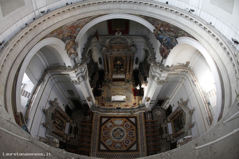 In the basilica is traditionally brought the drapery won after the Palio of 2 July by the procession of the winning district.