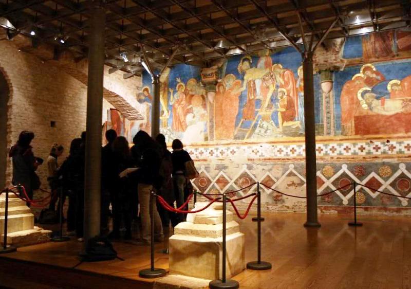 Beautiful in the preservation intact of colors and gold shares also the frescoes of the "Stories of Passion". Dating back to the seventies of the thirteenth century, these paintings reveal themselves surely fundamental to better understand the development of the Sienese school of painting. Undoubtedly this place and his paintings directly raised by the thirteenth century, were probably the school and the laboratory where he studied and formed Duccio and are certainly one of the major attractions that Siena has to offer visitors to read.
