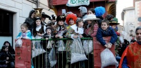 Carri, coriandoli e maschere per il Carnevale di Meio, che si svolge ogni anno ad Asciano ...