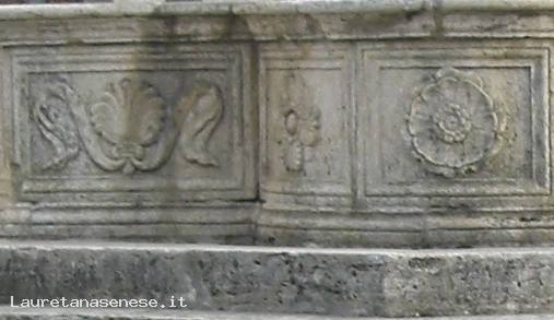 Located in what was then the mercantile center of town, this magnificent fountain was sculpted by the Renaissance artist Antonio Ghini in 1465. The outer portion of the basin is divided into rectangular panels decorated with designs of plants and various allegorical figures. In the middle of the basin there rises up a tall jug out of which the water spurts. The jug sits on a triangular base displaying the coats of arms of the two powerful men who had the fountain built: Palmieri and Nanni.